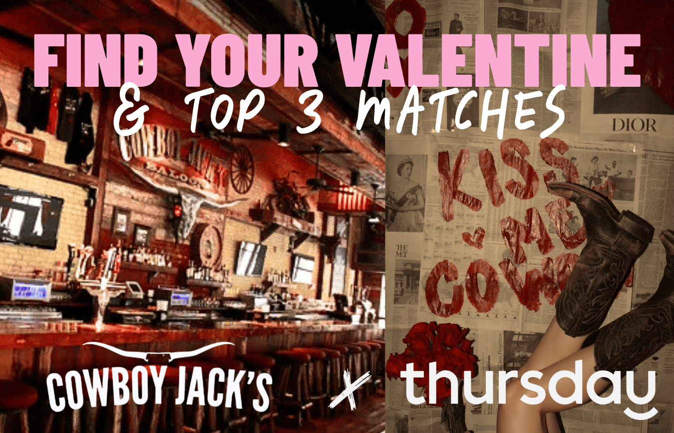 THURSDAY | 🤠💋RODEO ROMANCE – FIND UR VALENTINE💘  | MYSTERY MATCH NIGHT 📍COWBOY JACKS DOWNTOWN