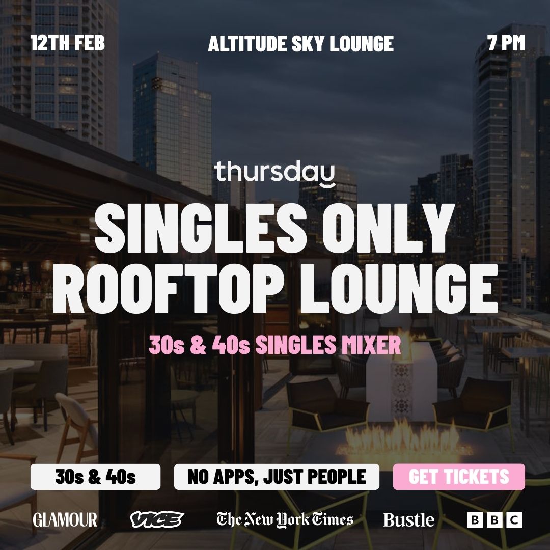 On Feb 12, we’re taking over Altitude Sky Lounge for a singles-only rooftop lounge party made for flirting, dressing up, and seeing who catches your eye. The city is glowing, the drinks are smooth, and the room is full of people who are very much not taken.