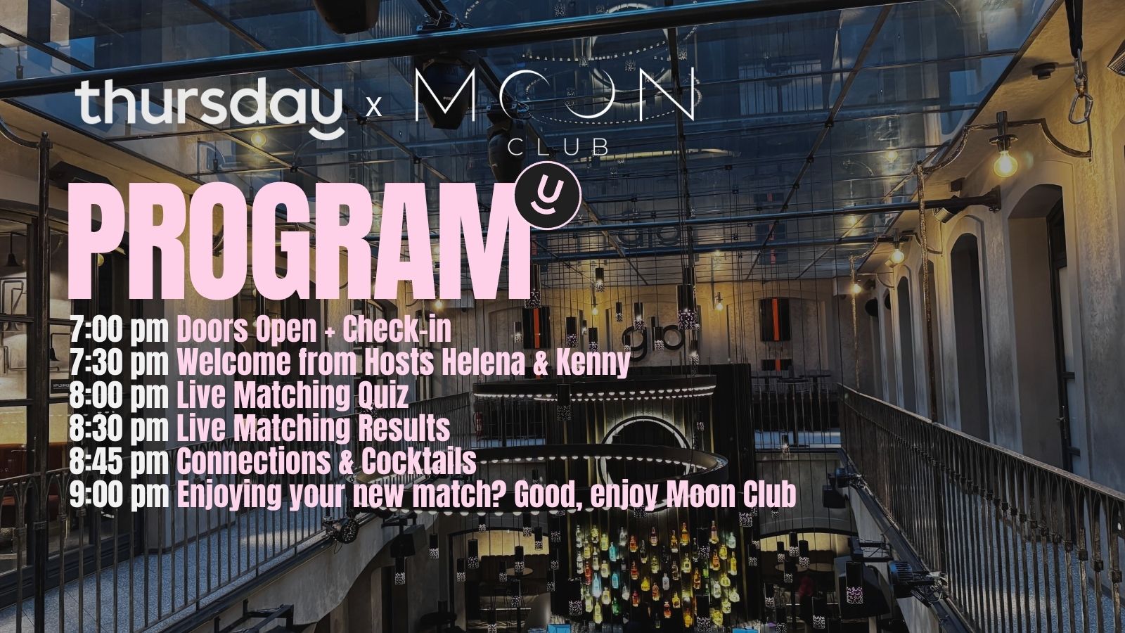(Note: Thursday events at Moon Club are private events and so dedicated to Thursday guests. The main club opens at 9pm.)