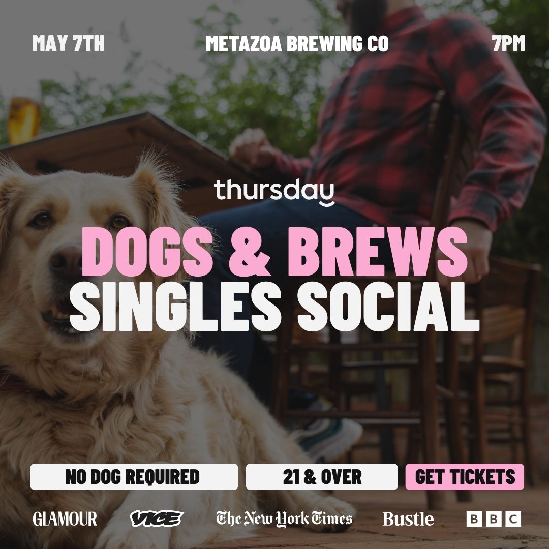 Calling all dog lovers and craft beer enthusiasts! This is your chance to meet local singles in a relaxed, dog-friendly environment. Whether you bring your furry best friend or just your love of pups, you’ll enjoy an evening of casual mingling, great conversation, and a selection of Metazoa’s brews.