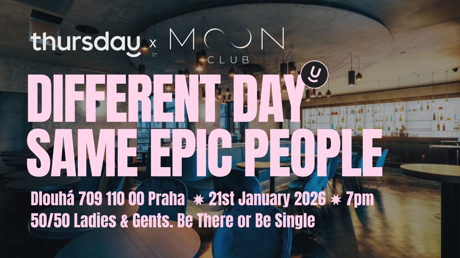 In collaboration with Prague’s Moon Club, we invite you to a classy evening of music, mingling & … what we call live – IN REAL LIFE – matching.