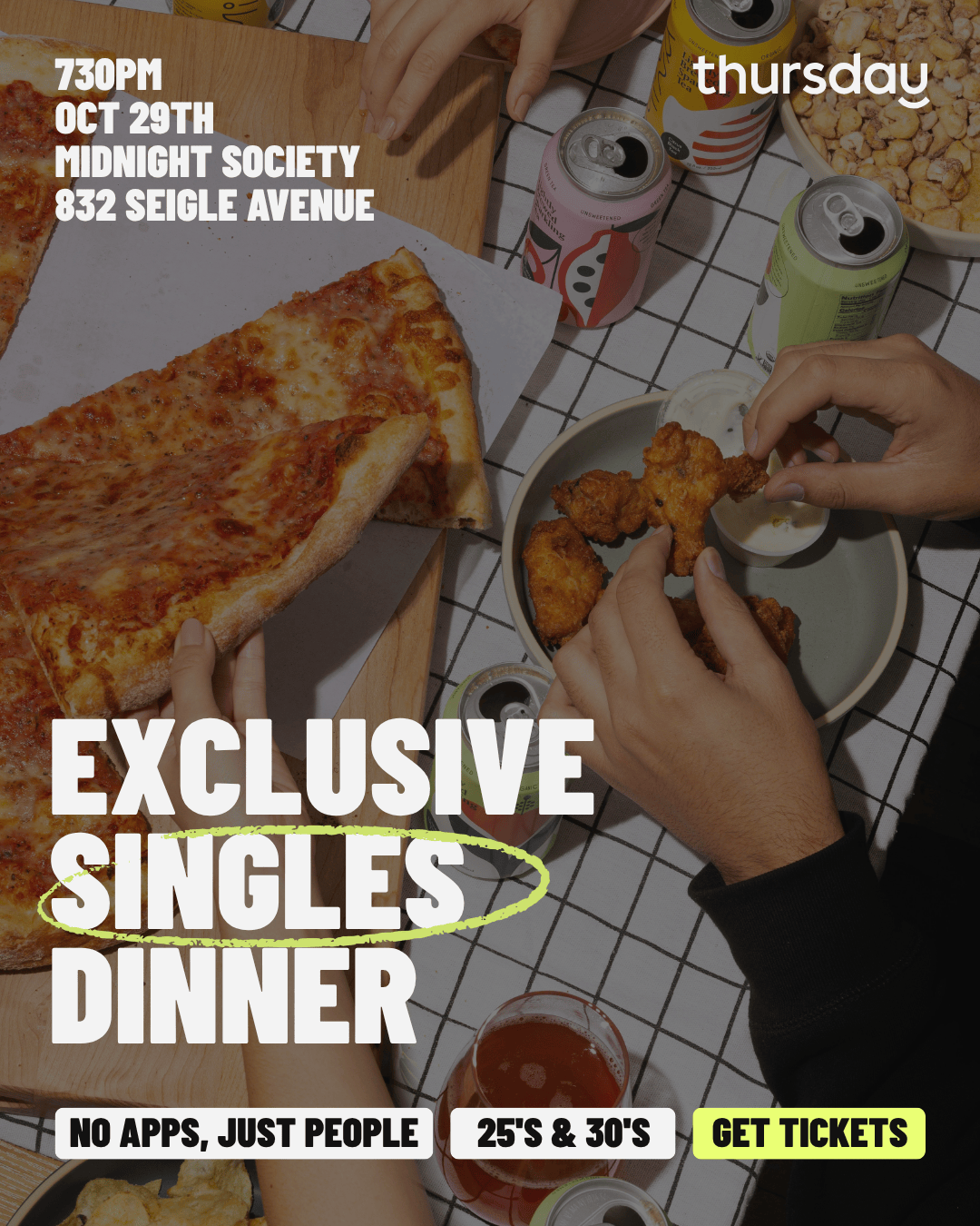 Join us for Thursday Singles Dinner @ Midnight Society, where real connections meet good food, great drinks, and a little friendly competition. đ