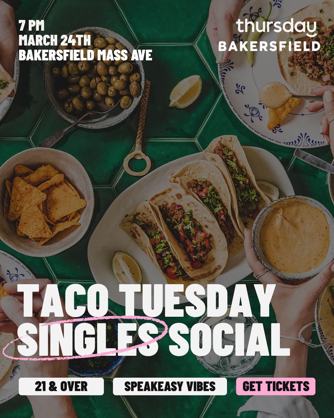 Come hungry and ready to socialize. Bakersfield’s street-style tacos, tequila, and craft cocktails will be available for purchase all evening, so you can sip something bold, grab a few tacos, and let the conversations flow. Whether you’re looking for a spark or simply a better way to spend your Tuesday night, this is where you’ll want to be. 🌮